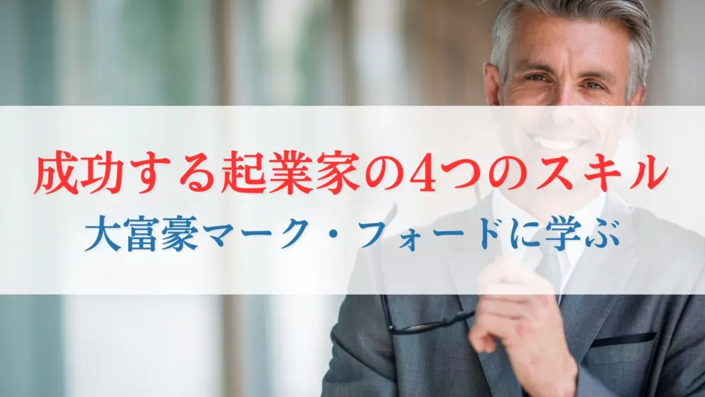 今日ご紹介するのは、アメリカの大富豪であり、いくつもの“年商100億円企業”を生み出してきた天才起業家、マーク・フォード(ペンネーム:マイケル・マスターソン)が語る「起業家に欠かせない4つのスキル」です。